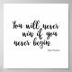 Affiche citant Helen Rowland, "Vous ne gagnerez jamais si vous ne commencez jamais."