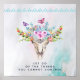 Une affiche avec une citation inspirante qui dit : laissez tomber les choses que vous ne pouvez pas contrôler. Conçu avec un arrière - plan d'aquarelle turquoise et pastel. Un crâne animal chic boho avec un bouquet floral sur la tête et des petits papillons qui fleurissent. Une jolie bordure décorative aux petites teardrop en bleu clair.