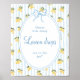 Ajoutez un jeu amusant et festif à votre douche nuptiale avec ce panneau "Devinez combien de gouttes de citron sont dans le pot"! Avec des citrons d'aquarelle gais, des rayures bleues douces et un élégant cadre incliné, ce panneau est une façon douce d'attirer les invités à votre fête inspirée de la côte amalfitaine.