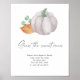 Invitation vos invités avec cette chute d'aquarelle congé, eucalyptus et citrouille blanc baby shower élégante invitation. Utilisez les outils de conception pour modifier le texte, modifier la couleur et le style de police pour créer un modèle unique d'invitation aimable. Éléments correspondants disponibles.