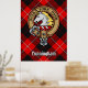 Clan Cunningham crête badge entouré d'une sangle et boucle sur l'arrière - plan tartan. Texte personnalisé.