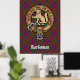 Clan MacGowan crête badge entouré d'une sangle et boucle sur l'arrière - plan tartan. Texte personnalisé.