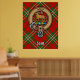 Clan Scott badge crête entouré d'une sangle et boucle sur l'arrière - plan tartan rouge. Texte personnalisé.