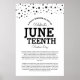 Célébrez la fête du 11 juin ! Cette affiche présente un design minimaliste mais significatif sur le thème de la junte. Au sommet se trouve un amas d'étoiles représentant les États-Unis. Au lieu de cela, ces étoiles sont dans une palette de couleurs noir et blanc. En-dessous, vous trouverez votre message unique sur ce que signifie pour vous le 19ème jour férié. Un excellent outil éducatif pour enseigner aux gens plus sur le 11° juin. Tous les éléments de cet élément sont déverrouillés et personnalisables. Avec cela à l'esprit, amusez-vous à être créatif et à en faire votre propre.