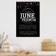 Célébrez la fête du 11 juin ! Cette affiche présente un design minimaliste mais significatif sur le thème de la junte. Au sommet se trouve un amas d'étoiles représentant les États-Unis. Au lieu de cela, ces étoiles sont dans une palette de couleurs rouge, noir et bleu. En-dessous, vous trouverez votre message unique sur ce que signifie pour vous le 19ème jour férié. Un excellent outil éducatif pour enseigner aux gens plus sur le 11° juin. Tous les éléments de cet élément sont déverrouillés et personnalisables. Avec cela à l'esprit, amusez-vous à être créatif et à en faire votre propre.