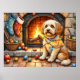 Poster Cockapoo Sitting by Fireplace with Christmas Light