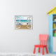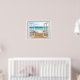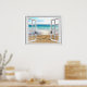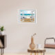 Des oreilles romantiques sur la plage de sable, une fausse scène de fenêtre, pour un mur de chambre sans fenêtre. Illusion d'optique réaliste et amusante affiche pittoresque pour un bureau ou un mur d'étude.