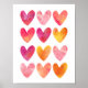 Poster Coeurs d'aquarelle rose et orange imprimé