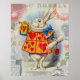 The Classic White Rabbit from Alice in Wonderland - Alice's Adventures in Wonderland présente le lapin blanc. Cette image classique du lapin blanc est tirée du livre original, montrant le lapin soufflant une corne, portant un uniforme de coeurs rouges. Le lapin blanc est vu dans l'histoire d'Alice au pays des merveilles, depuis le trou du lapin jusqu'à la Fête du Thé Mad avec la Chapelle Mad. Le collage alice au pays des merveilles est une belle image pour les invitations de fêtes et les cadeaux. Écrit par Lewis Caroll en 1865, Alice tombe dans le trou du lapin et est impliqué dans un pays merveilleux d'imaginaire.