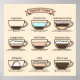 Various coffee types in the cup set