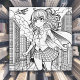 Poster colorant pour enfants, ados ou adultes. Un super-héros féminin volant à travers le ciel de la ville entre les bâtiments et les gratte-ciel. Poster de coloriage pour adultes.