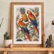 Inspired by antique botanical prints and tropical wildlife artwork, this design blends the beauty of exotic birds, tropical fruits, and decorative foliage into a striking composition. The intricate textures and warm tropical colors make this artwork perfect for lovers of parrot illustrations, tropical decor, and vintage wildlife art.