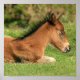 Un cheval de colt reposant dans l'herbe sur une affiche.
