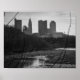 This black-and-white photograph of Columbus's skyline was captured at Confluence Park.