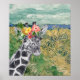 Une belle compilation artistique présente le champ de blé de Vincent Van Gogh avec des fleurs de Cornouailles comme arrière - plan avec portrait de girafe à l'aquarelle de couronne fleurie.