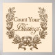 L'image vintage sur cette impression se lit "Count Your Blessings" qui est un bon message à retenir pour tous.