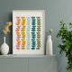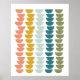 Un motif géométrique moderne et amusant, composé de rangées de demi-cercles qui rappellent les bols de cuisine, dans une jolie palette de couleurs bleu, turquoise, corail et vert sauge.