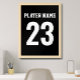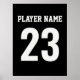 Célébrez votre joueur favori avec ce design saisissant fait pour ressembler à l'arrière d'un maillot de sport. Personnalisez avec un prénom ou un nom et un numéro de famille. Parfait pour les amateurs de sport, ce poster est idéal pour les enfants et les chambres d'ados, les salles de jeux ou les grottes. Le contraste noir et blanc audacieux assure qu'il se démarque comme un énoncé. Ajoutez à votre collection une touche de sportivité. Les couleurs peuvent être modifiées en fonction de l'équipe ou du décor.