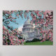 Image vintage de fleurs de cerisiers encadrant le Capitol Building à Washington, DC.