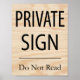 Êtes-vous fatigué des gens qui envahissent votre espace personnel ? Faites-leur savoir que ce sont vos mots et que ce ne sont pas leurs affaires. Ce panneau indique "Signe privé". Ne lisez pas." Ce signe humoristique est quelque chose dont vous avez besoin si vous voulez vous débarrasser de l'intrusion de snoops littéraires. Alors allez-y et dites aux gens à MYOB.