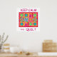 Montrez votre amour de la courtepointe avec cette affiche murale en blocs de courtepointes amusante et colorée qui proclame "Conserver le calme et la courtepointe". Ce design est original de l'art de la courtepointe et des blocs de courtepointe patchwork préférés, ainsi que des blocs uniques, dont le cabine de journal, le pinwheel, l'étoile et le carré, dans un bloc carré. Le mot "courtepointe" est facile à changer pour un autre mot de votre choix. Le design des courtepointes est dans des couleurs vives et dynamiques d'orange, jaune, rose, turquoise et vert citron pour une belle palette de couleurs. Entièrement personnalisable pour personnaliser. L'art de la courtepointe est l'art original de Phyllis Dobbs, concepteur de tissus et de courtepointes. Cet art est disponible sur d'autres produits et dans plusieurs arrière - plans de couleur et est également disponible sur plus Garder Calm produits avec différentes surfaces composées. Plus de produits sont disponibles dans Phyllis' BusinessWithFlair store.