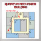 Mécanique quantique Texte de construction avec plan de plancher et deux flèches vous êtes ici. Les particules peuvent être à deux endroits différents simultanément. Le Peux-Tu ? Un drôle de design de physique pour les ingénieurs, les scientifiques, les enseignants des écoles de sciences et les étudiants.
