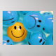 Une affiche inspirante représentant une boule jaune souriante dans une mer de boules bleues qui fronce les sourcils et représentant l'importance de garder un sens de l'optimisme et de l'humour.