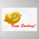 citron jaune avec une bonne bouchée enlevée contre l'arrière - plan texturé et un texte rouge Gardez le sourire ! N'abandonnez jamais et gardez votre menton en place ! Si live vous donne un citron il suffit de faire de la limonade à partir d'elle!