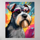 C'est un Schnauzer miniature portant des lunettes. C'est cool ? C'est assez cool. Mon chien Calypso a posé pour la photo que j'avais l'habitude de peindre ceci. J'ai ajouté les lunettes. Les mamans et les papas de Schnauzer savent qu'ils ne restent pas assis avec des lunettes pendant plus d'une demi-seconde.