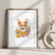 Poster Corgi Chiot Funky Animal Fleur Aquarelle