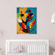 A vibrant geometric abstract of orbiting circles and sleek lines in teal, tangerine, red, and yellow. The design channels mid-century modern and Bauhaus sensibilities—clean shapes, strong color blocks, and lively motion. Perfect for contemporary interiors, creative studios, and gallery walls. Pair with minimalist furniture and warm lighting for a striking focal point.