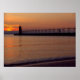 Le coucher du soleil à la jetée du phare de South Haven sur le lac Michigan.