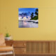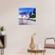 Poster Coucher de soleil avec palmiers et plage rocheuse