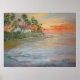 Beau coucher de soleil à clé ouest montrant des palmiers et l'océan.