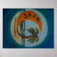 OEuvre d'art originale en couleur d'une Lune de palmiers, Scène Océanique avec SHAG sur la lune, Danse sur les vagues et comme personne ne regarde sous l'oeuvre. Souvenez-vous de ces grands moments à la plage !