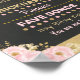 Ce design présente une couronne royale scintillante en or faux pailleté décorée de pivoines rose pastel à l'aquarelle douce et de confettis sur fond tableau noir.