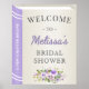 Élégant panneau de bienvenue de conte de fées lavande conçu comme une couverture de livre. Idéal pour une douche de mariage sur le thème du livre/bibliothèque, un anniversaire, une baby shower/sprinkle, ou une autre occasion. Pour plus de couleurs et d'articles assortis (invitations, encarts, décorations et plus), veuillez visiter ma boutique Zazzle.