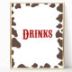 Poster Cowboy Rodeo Western Boissons Panneau de la Table