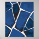This abstract composition features bold geometric Cracked pattern in varying shades of blue, intersected by sharp white lines and subtle black textures. The design resembles shattered pieces or cracked surfaces, giving a sense of fragmentation and structure at the same time. The combination of deep blue tones with white and black contrast creates a striking visual rhythm — both energetic and balanced. The cracks and uneven edges add depth, texture, and artistic tension to the composition.