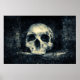 Grande image d'un crâne humain contre l'arrière - plan noir ou sombre. Une impression acrylique pour n'importe qui. Amusez-vous et un Halloween heureux ! Mange, bois et fais peur !