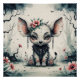 Un hybride doux est installé dans une clairière boisée, ornée d'une fleur, d'un collier en plumes et de charmes délicats. Entourée de fleurs en fleurs, d'arbres et de chauves-souris, cette scène rêvée mêle imaginaire et sérénité avec une touche de charme gothique. Parfait pour les imprimés et les cadeaux qui évoquent la magie tranquille et l'émerveillement boisé. AI