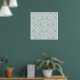 Affiche d'art décoratif d'un motif damassé de style baroque orné de détails crème sur un arrière - plan bleu et une bordure encadrée blanche.
