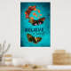 Un message d'inspiration et de motivation, "Croyez en vous", sur un arrière - plan turquoise plein de vie avec des papillons et des fleurs.