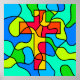 Illustration simple d'un symbole de croix coloré conçu dans le style d'une église en vitrail. Image disponible sur divers cadeaux et produits.