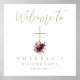 Belle croix florale bordeaux signe de bienvenue de la fête de la mère avec une croix d'or florale rouge et le nom de la future mère dans élégante typographie dorée. Ce joli signe de bienvenue de célébration religieuse rouge et blanc fait partie de la collection de fête de bénédiction de la mère chrétienne et de la petite fille bordeaux florale, et est également modifiable pour une variété d'occasions et de célébrations religieuses.
