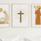 OEuvre chrétienne minimaliste d'une croix brillante aux rayons dorés de la lumière. Un symbole puissant de foi, d'espérance et de vie éternelle, parfait pour Pâques ou l'inspiration quotidienne.
