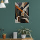 Geometric abstract art with shapes resembling stairs and architectural blocks. Tones of black, white and rusty orange. Sophisticated painted texture. Ideal for modern decoration and offices. Structural design playing with perspective and depth in an elegant and contemporary composition.