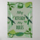Ma cuisine mes règles drôle couverture de cuisine. Détails de la cuisine de couleur verte. Pour les amateurs de cuisine cuisinière et professions de chef. Faites vivre votre cuisine et faites vos propres règles chez vous. Cuisine, salle à manger et outils de cuisine couverture graphique.