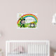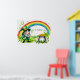 A vibrant St. Patrick's Day design featuring a cheerful leprechaun with a pot of gold, a rainbow arching over a lush green landscape, and shamrocks scattered throughout. With custom text.