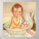 Décorez votre mur d'un charmant poster vintage, avec un bébé mignon prenant un bain dans un bol.